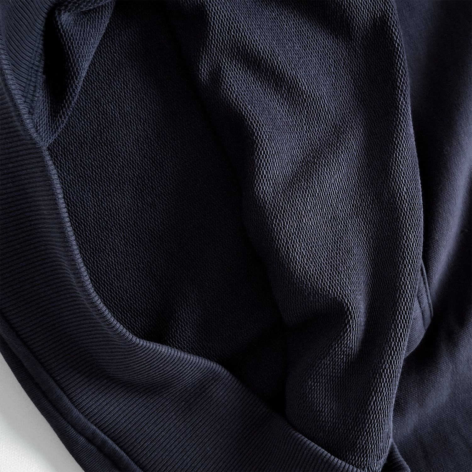 - Drawstrings with metal eyelets in the color of the sweatshirt.