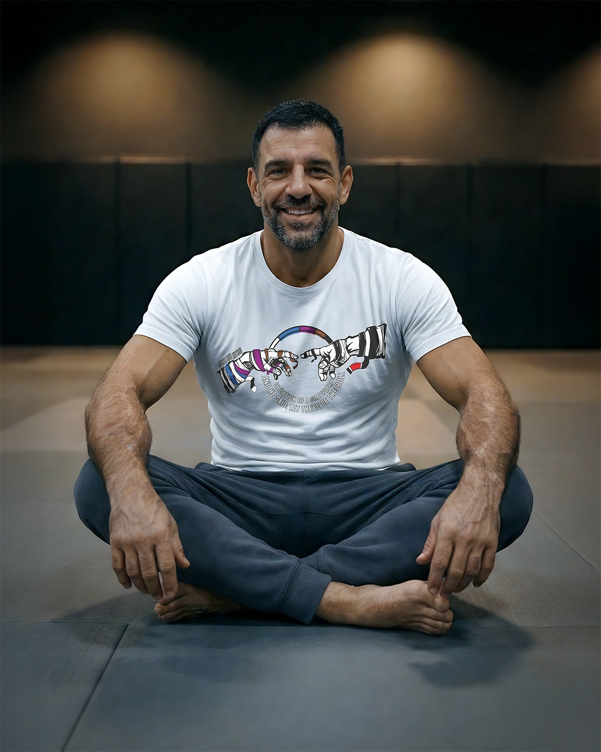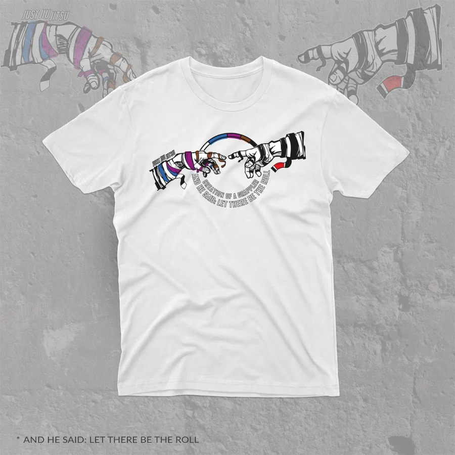Our T-shirts have a regular fit. This means that they are designed to be comfortable to wear and versatile. This cut is perfect for both men and women of all body types. It ensures freedom of movement and an aesthetic look without the “baggy” effect. To achieve the desired effect, choose the right T-shirt size. We encourage you to familiarize yourself with our detailed size chart. This T-shirt is made from 100% top-quality combed cotton. This makes the fabric exceptionally smooth, soft, and pleasant to the skin from the very first time you wear it. The weight of the fabric has been selected to ensure that the T-shirt is sturdy and durable, yet breathable and comfortable to wear all day long. Based on our experience and that of our customers, T-shirts do not shrink during washing. However, as with any clothing made from natural fibers, slight changes in size may occur. To keep your T-shirt and its unique graphics looking like new for as long as possible, we recommend following these tips: We care about comfort, which is why we use modern DTF printing technology. This means that the print is integrated into the fabric, is flexible, and barely noticeable to the touch. We avoid thick, “plastic” prints that are stiff and crack after a few washes. Our graphics move with the fabric, ensuring maximum comfort. This T-shirt was designed as lifestyle clothing, intended for everyday wear outside the mat. It is made of 100% cotton, which provides exceptional comfort, but does not have the technical properties (moisture wicking, quick drying) required during intense physical activity. For BJJ training, both Gi and No-Gi, we recommend using specialized technical clothing, such as rashguards, which provide adequate compression, skin protection, and thermal comfort. And He said: Let there be the roll BJJ begins with empty hands, ready to accept what has not yet taken shape. The master's hand appears above the student, as in Michelangelo's fresco, where the touch between the Creator's hand and the human hand carries the spark of life. #bjj #bjjlife #bjjstyle #bjjwearWhat is the cut of this T-shirt, especially on an athletic or muscular physique?