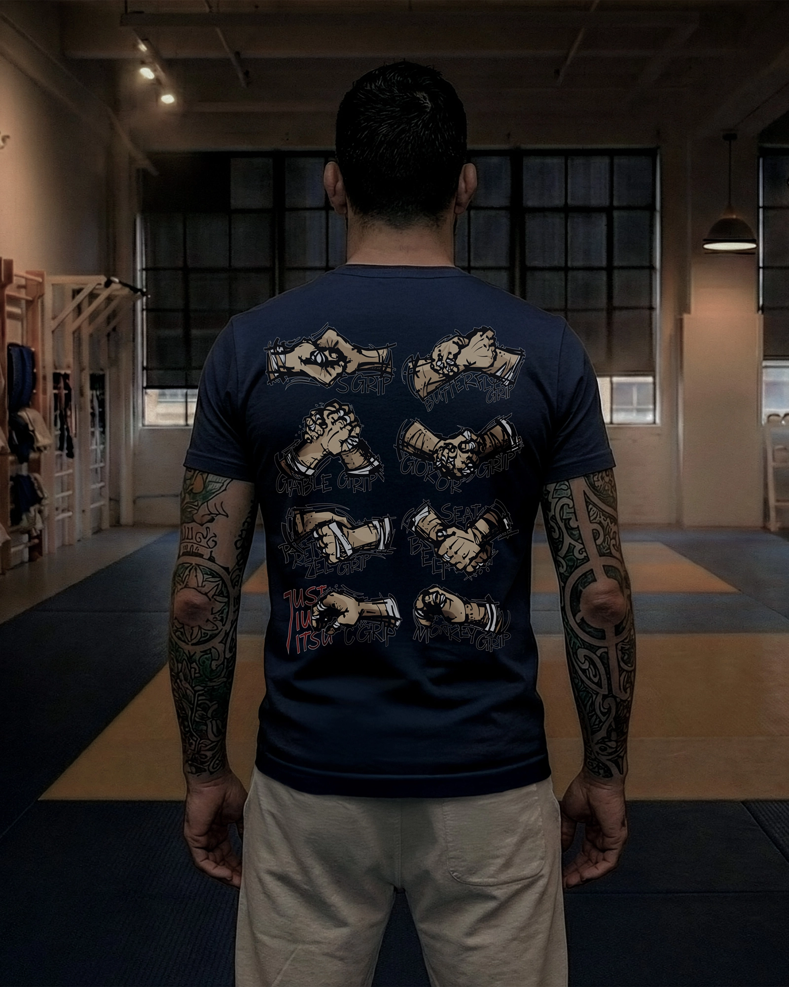 BJJ Grips Navy T-shirt – composition and features: