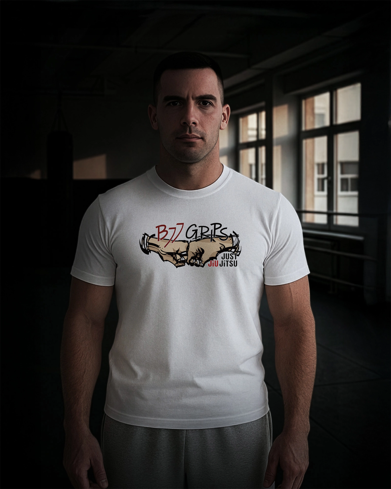 BJJ T-shirt Grips White – composition and features: