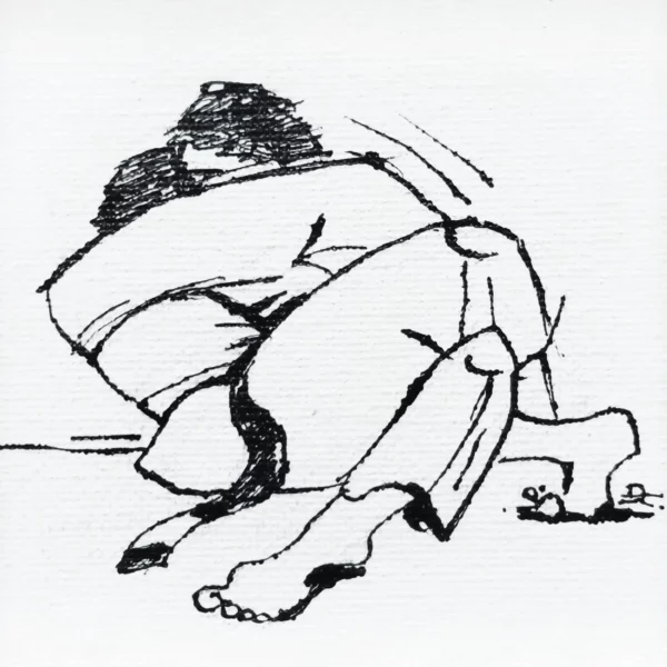 Handmade Half Guard BJJ Ink Drawing by Dorothy Kiermasz from the series “Martial ART, Physical Culture”.