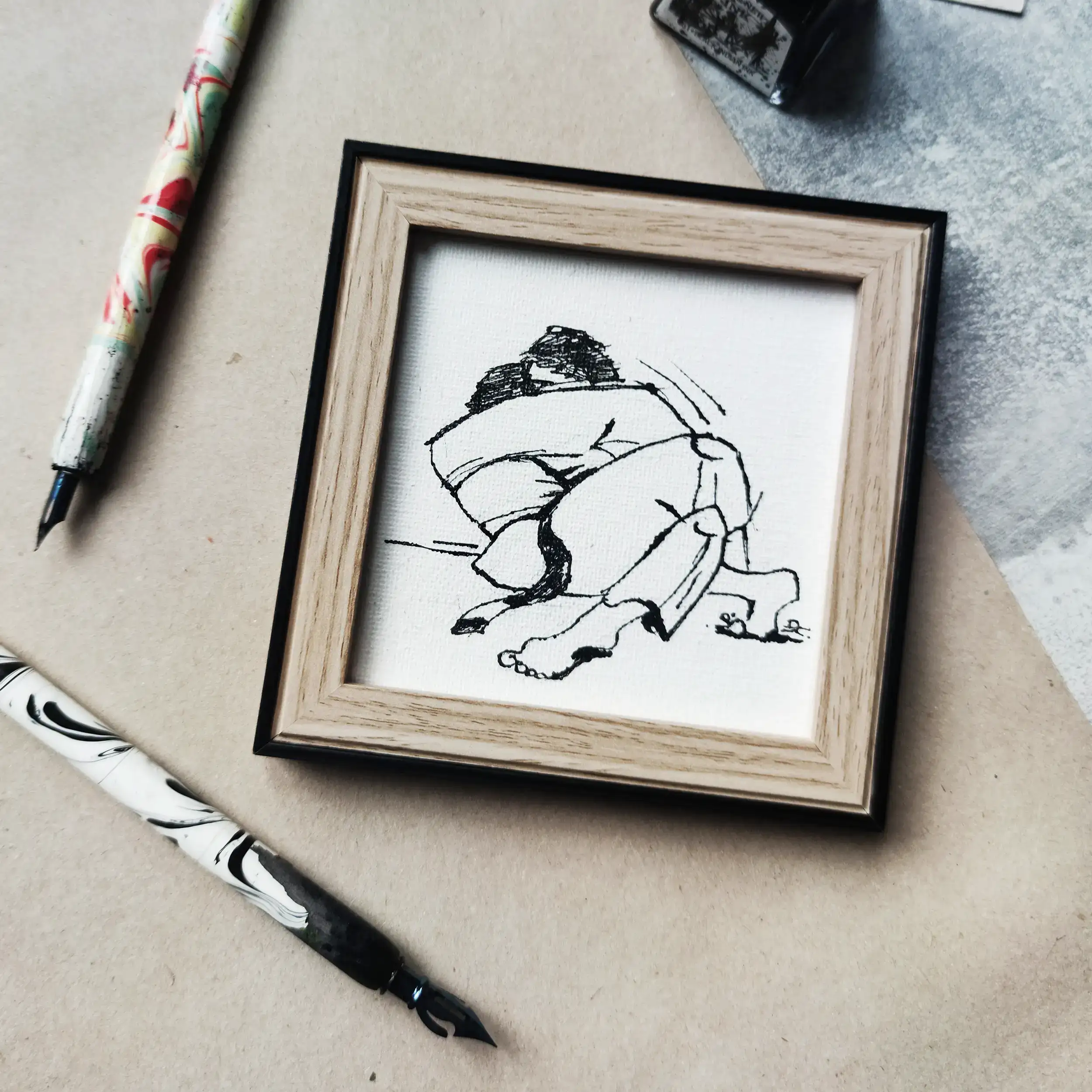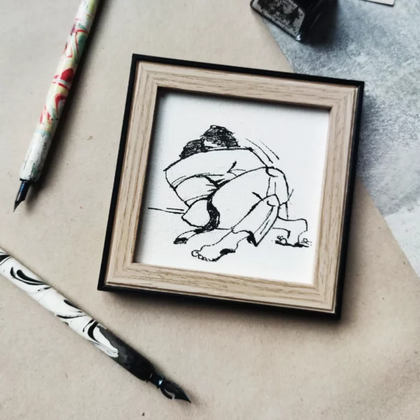 The handmade drawing is framed in an elegant frame, making it a perfect addition to any interior – it can be hung on the wall or placed on a shelf. This is the perfect gift for martial arts enthusiasts who want to surround themselves with items that reflect their love of BJJ.