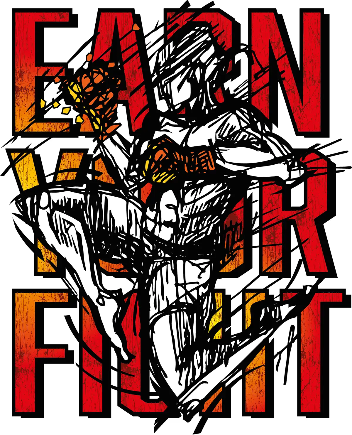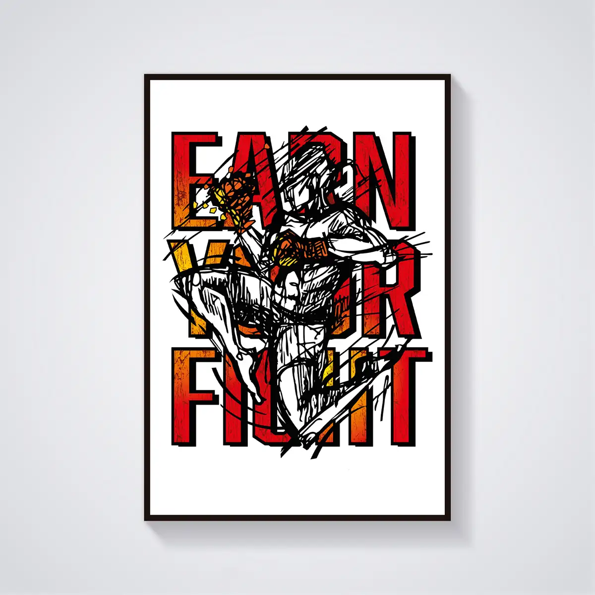 Unique Muay Thay Earn Your Fight poster inspired by hand drawn artwork!