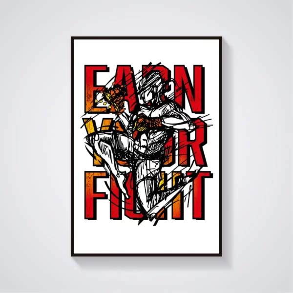 Unikalny plakat Muay Thai Earn Your Fight inspirowany ręcznym rysunkiem!